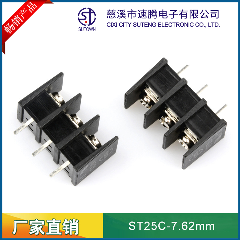 Material and Plating Spacing:7.62mm Plastic parts;PA66,UL94V-0 Welding needle:Brass,Tin plating Screw:M3.0,Steel,Nickel Plating Electrical performance Rated voltage:300V Rated current:15A Ambient temperature:-40℃~+105℃ MAX Soldering:+250℃,5s Withstanding Voltage:AC2000V/1Min Contact resistance:20mΩ Insulation resistance:500MΩ/DC500V Wire diameter:22-12AWG 2.5mm2 Torque:0.5Nm