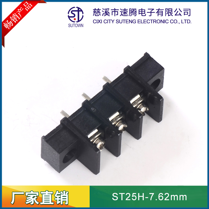 Spacing:7.62mm Material and Plating Plastic parts;PA66,UL94V-0 Welding needle:Brass,Tin plating Screw:M3.0,Steel,Nickel Plating Electrical performance Rated voltage:300V Rated current:15A Ambient temperature:-40℃~+105℃ MAX Soldering:+250℃,5s Withstanding Voltage:AC2000V/1Min Contact resistance:20mΩ Insulation resistance:500MΩ/DC500V Wire diameter:22-12AWG 2.5mm2 Torque:0.5Nm