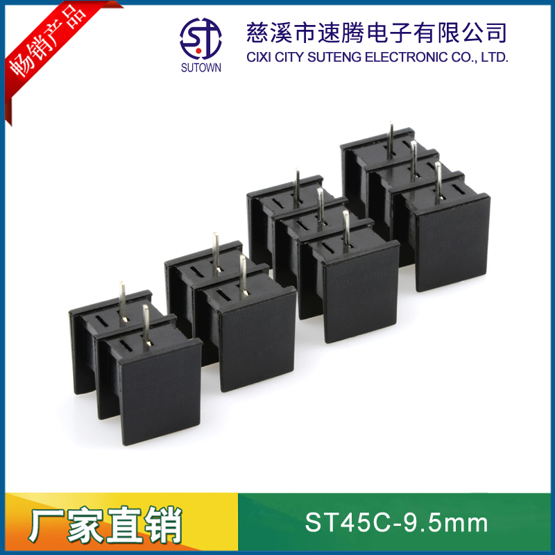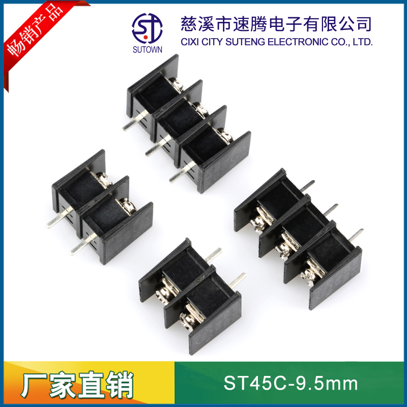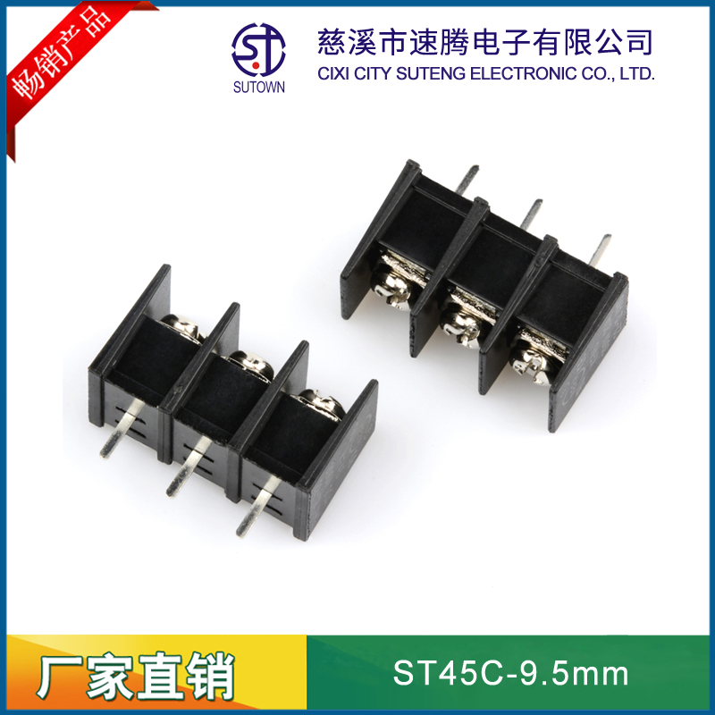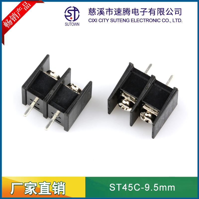 Material and Plating Spacing:9.5mm Plastic parts;PA66,UL94V-0 Welding needle:Brass,Tin plating Screw:M4.0,Steel,Nickel Plating Electrical performance Rated voltage:300V Rated current:25A Ambient temperature:-40℃~+105℃ MAX Soldering:+250℃,5s Withstanding Voltage:AC2000V/1Min Contact resistance:20mΩ Insulation resistance:500MΩ/DC500V Wire diameter:22-12AWG 4.0mm2 Torque:1.2Nm