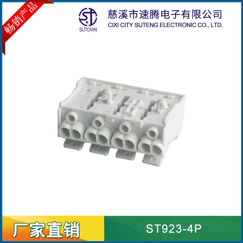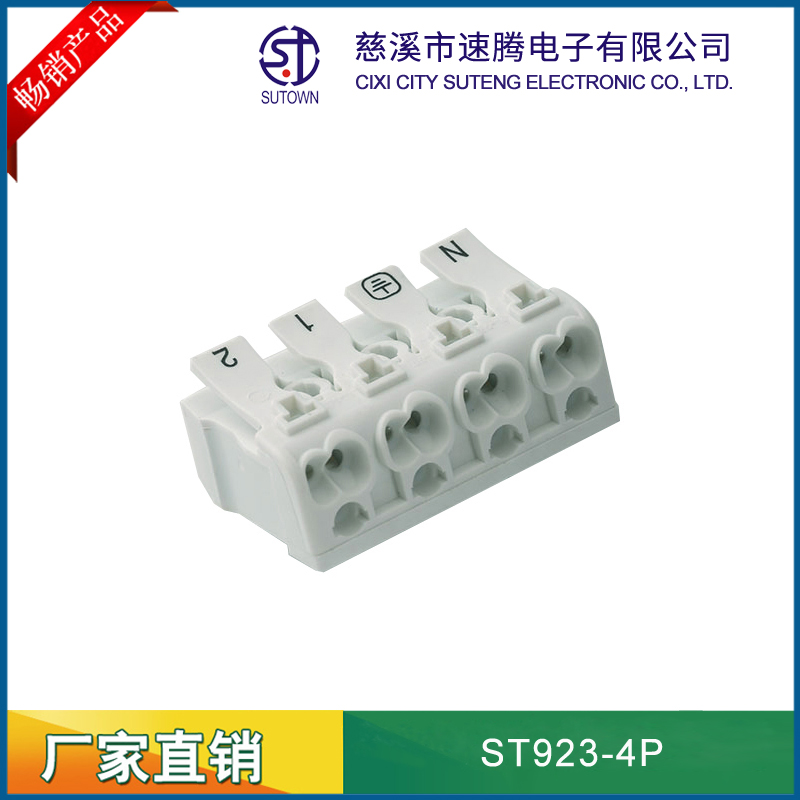 Product name:923 terminal block 4P Product model:ST923-4P Apply to wire:Hard and soft conductor 0.75-2.5mm^2 Technical parameter:Rated voltage:400V Rated current:24A Product size:40*,25*,21mm(Depth,width,hight) Product materials:Crust:Modifled nylonPA66 The diversion of article:Electrolysis copper (surface of the tin) Spring:301 Stainless steel