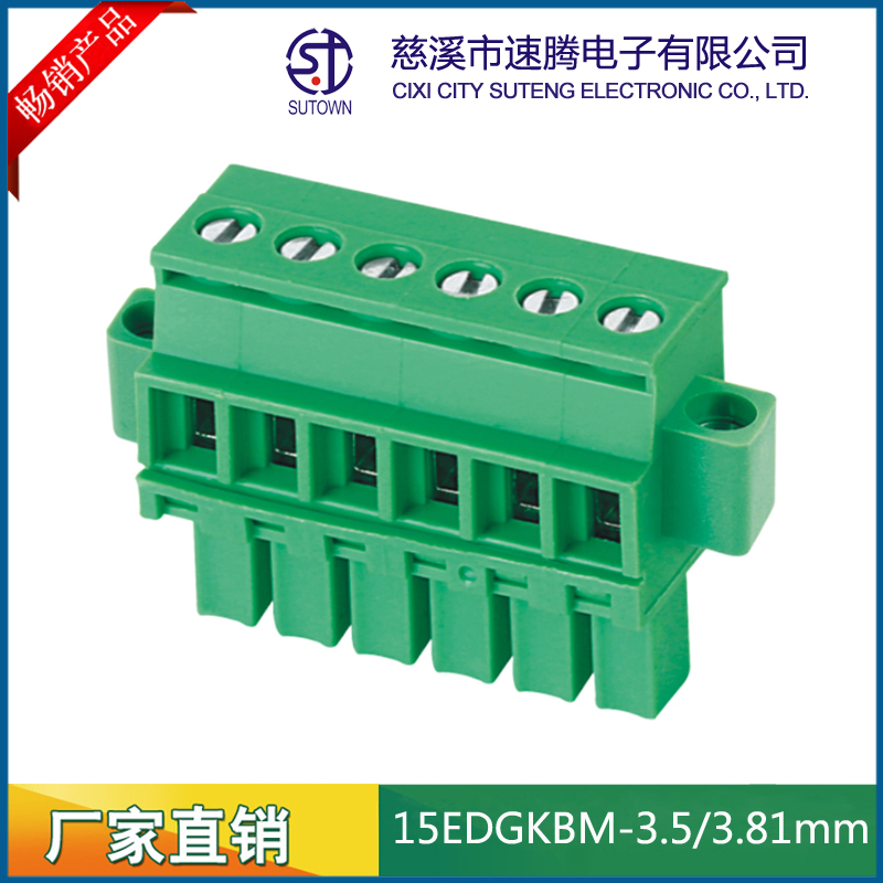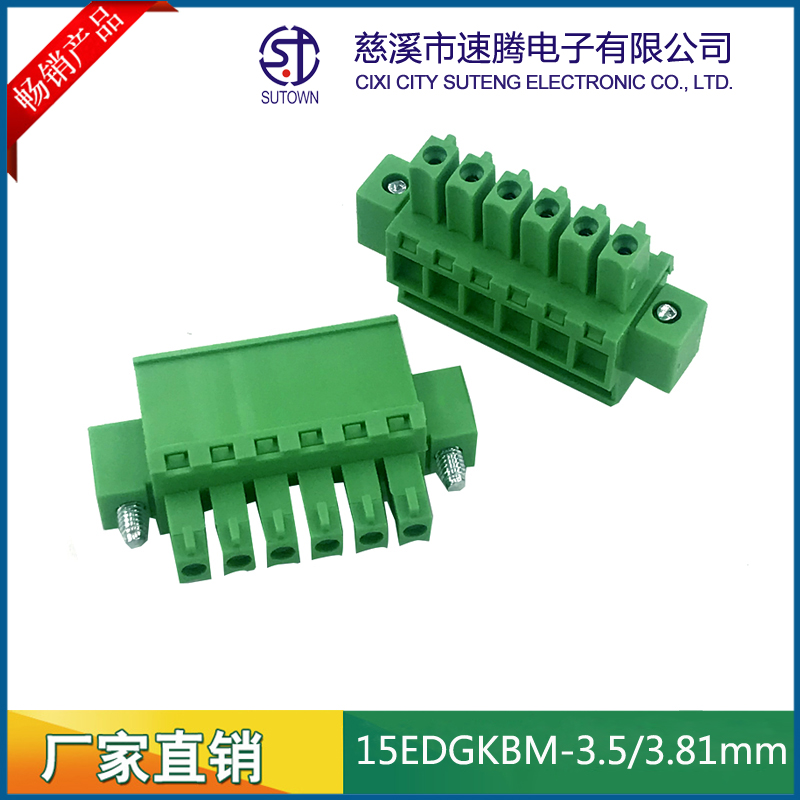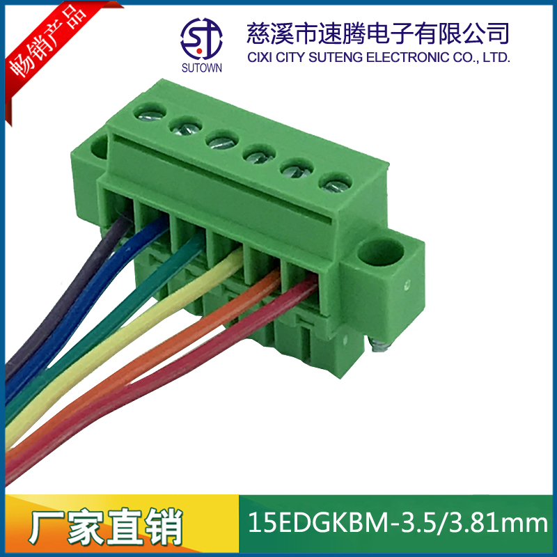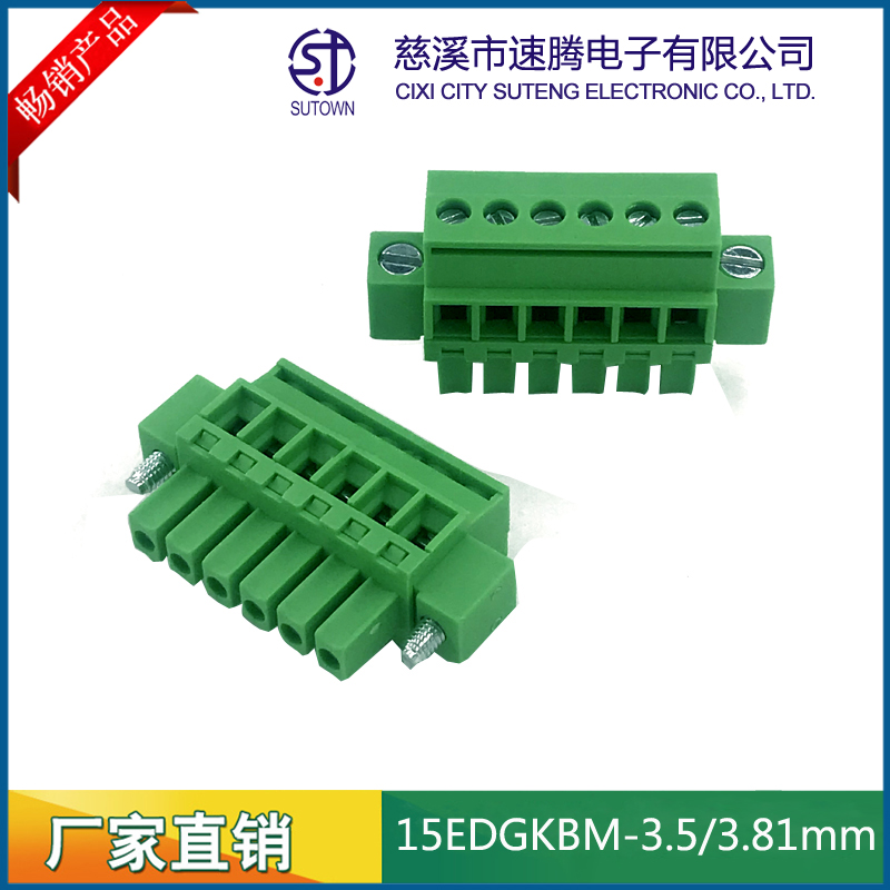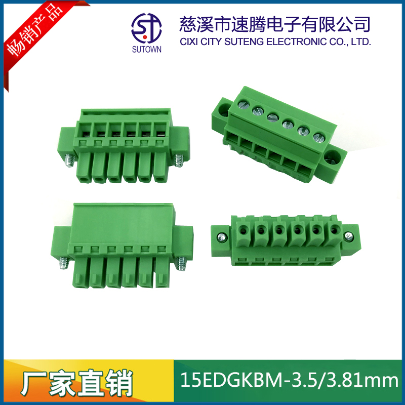 Material and Plating Spacing:3.5/3.81mm Plastic parts;PA66,UL94V-0 Cage:Brass,Tin plating Screw:M2.0,Steel,Zn Plating Terminal:Phosphor bronze,Nickel plating Electrical performance Rated voltage:300V Rated current:8A Ambient temperature:-40℃~+105℃ MAX Soldering:+250℃,5s Withstanding Voltage:AC2000V/1Min Contact resistance:20mΩ Insulation resistance:5000MΩ/1000V Wire diameter:28-16AWG 1.5mm2 Torque:0.2Nm Strip length:6-7mm