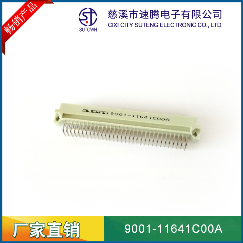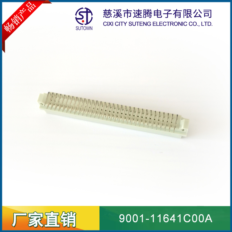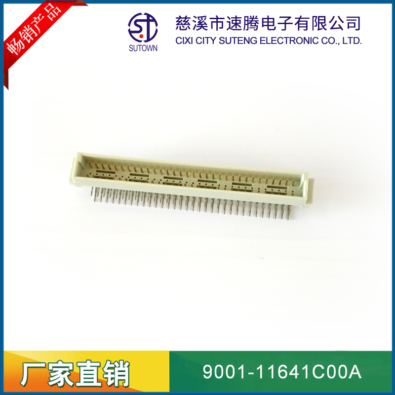 品名:歐式插座連接器型號:9001-11641C00A 規(guī)格:64pin屬性:彎針公座 備注:中間排1排間距:2.54間距